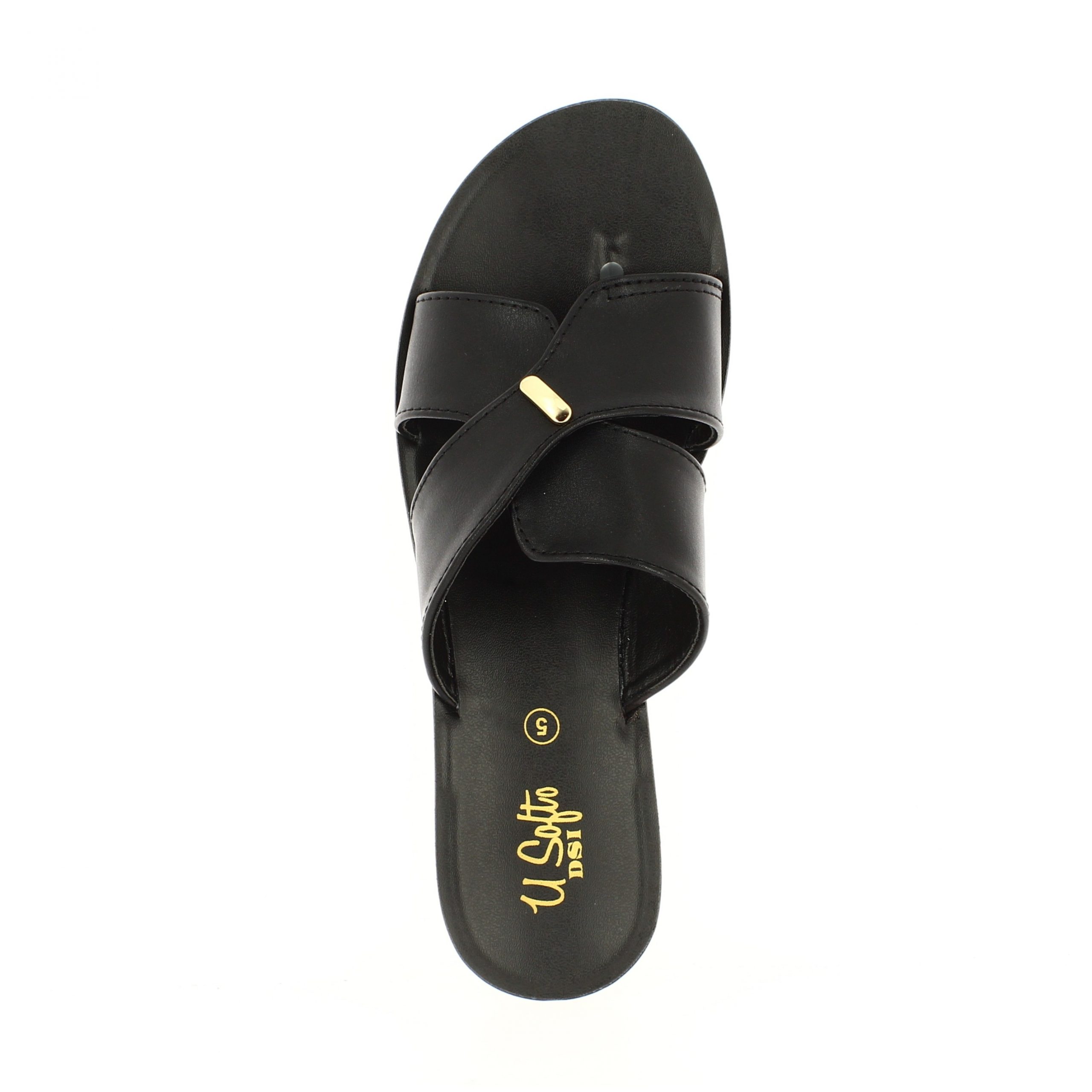 U Softo Women Casual Toe Ring Slippers BLACK